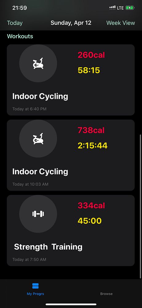 Present all workouts per day with appropriate icons #progrs