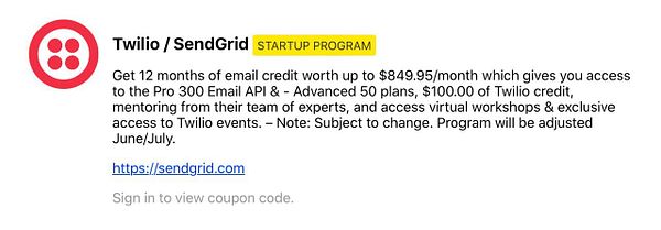 Add Twilio/SendGrid deal to wip.chat/deals #wip