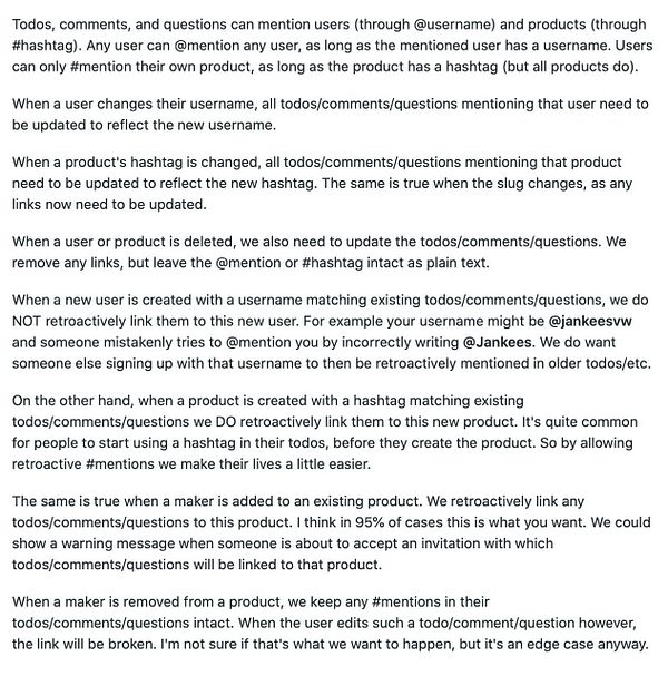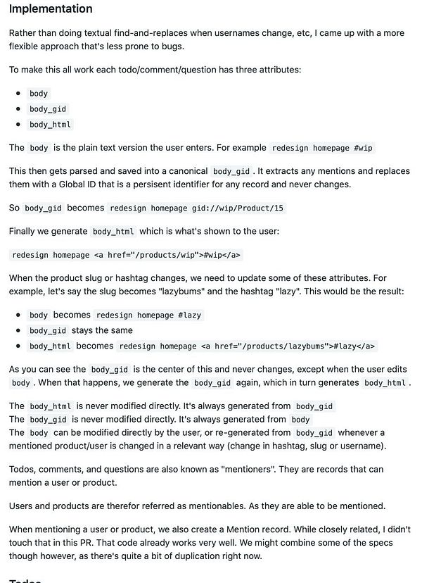 Refactor how mentions in todos, comments, and questions are stored. So that you can change hashtags, usernames, etc and everything still works as you expect.