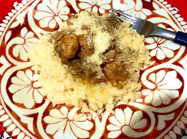 Cook parmesan risotto with shrimps #zg
