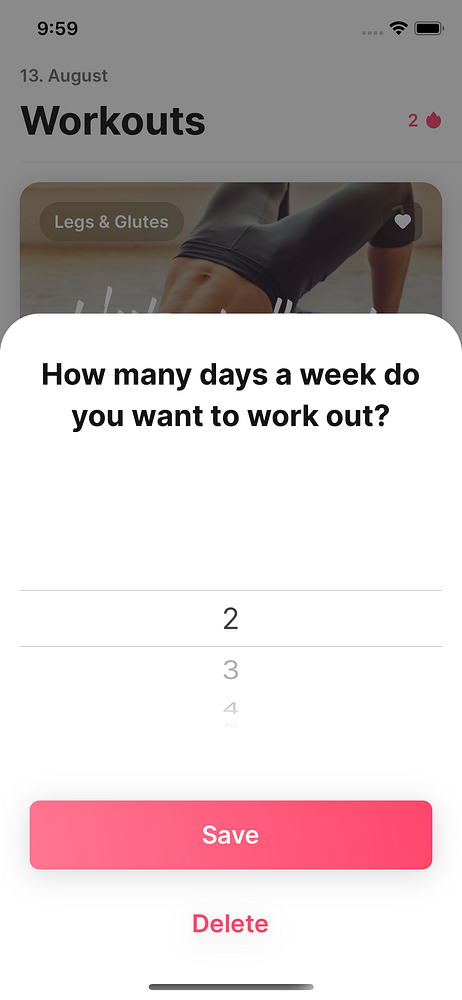 #weburn Develop Workout Routine Feature: Don't let users change workouts per week to a number which is below the number of already finished workouts in the current week - (e.g. 2 workouts are done this week, so the user shouldn't be able to reduce the number of workouts for this week to below 2).