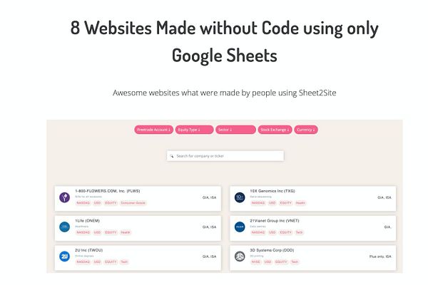 #sheet2site seo. write article 8 Websites Made without Code using only Google Sheets sheet2site.com/website-made-w…