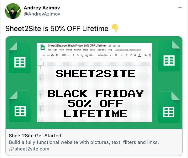 #sheet2site tweet about black friday twitter.com/AndreyAzimov/stat…