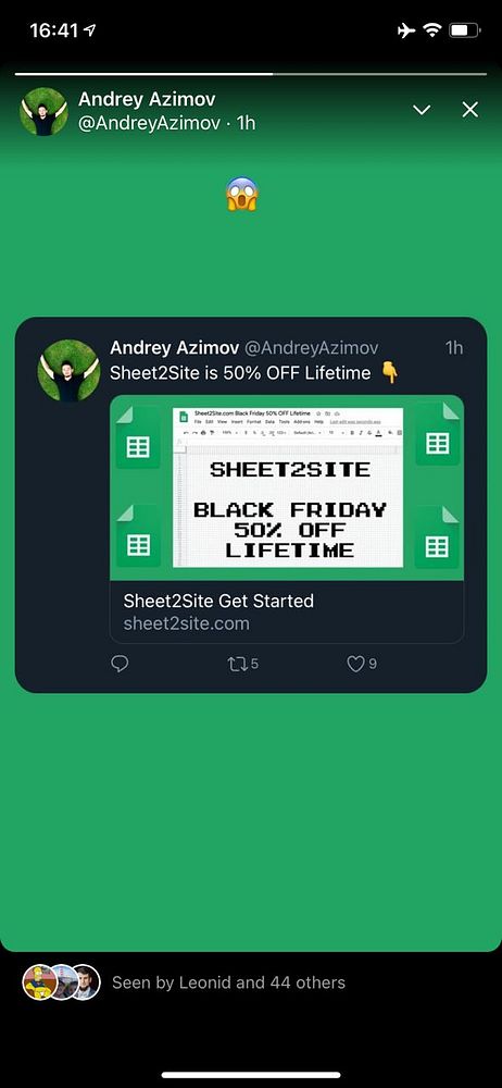 #sheet2site make the first story in Twitter twitter.com/andreyazimov