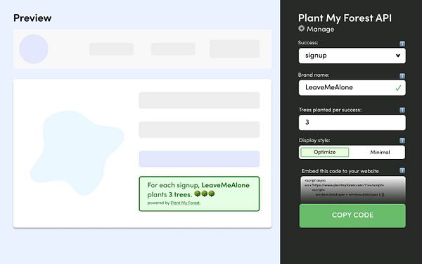 design a preview of Plant My Forest Checkout API #plantmyforest