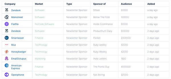 sync data so now you can see audience size of each sponsorship - makes it easier to find sponsors for newsletters with 100, 1000, 10000, 100000, 1000000 subscribers.