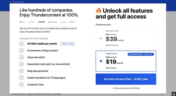pricing popup after free trial #thundercontent