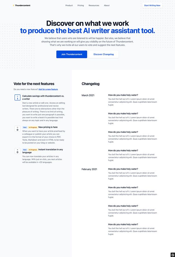 Integrate Changelog (can be saw by everyone) + Upvote Next Features (Upvote Only for Users) Page #thundercontent