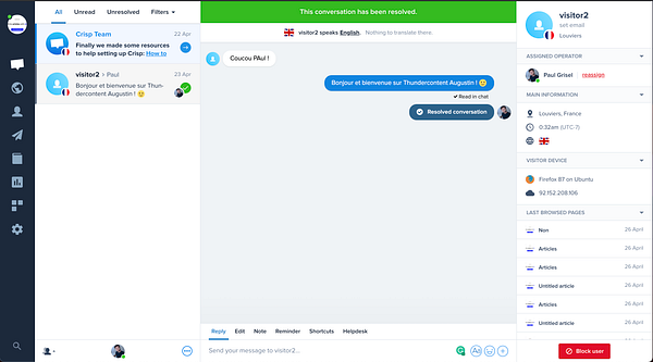 Install Crisp Chatbox on the entire website #thundercontent