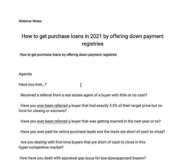 write script and bullets for webinar script. work-in-progress. #downpayment