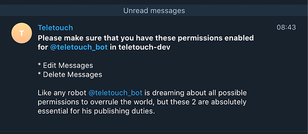 Making sure that the bot has enough privileges to post messages into the channel #stenograph