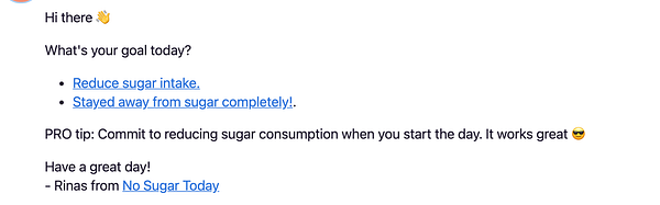 Update daily reminder content and run the rake task to send the email #nosugartoday