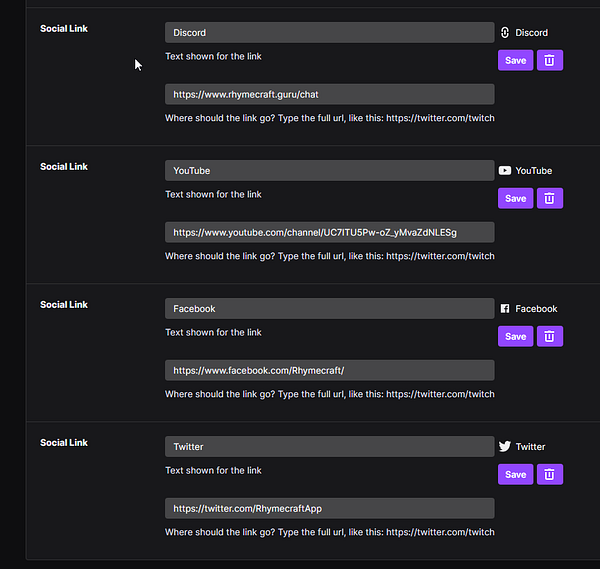 Added more social links to the Twitch account. #rhymecraft