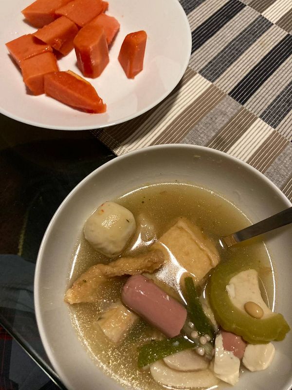 eat yong tou foo for dinner and some papaya for day 6 recovery surgery #fajarsiddiq