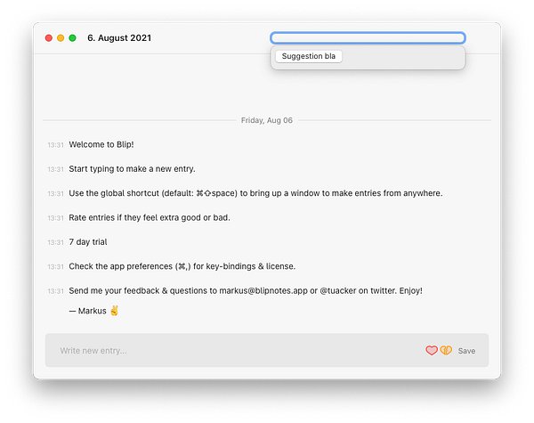 begin work on a suggestions search field that shows and hides a popup for now during edit #blip