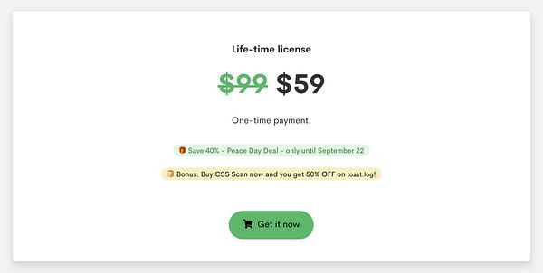 highlight toast.log offer at css scan's landing page bottom #cssscan