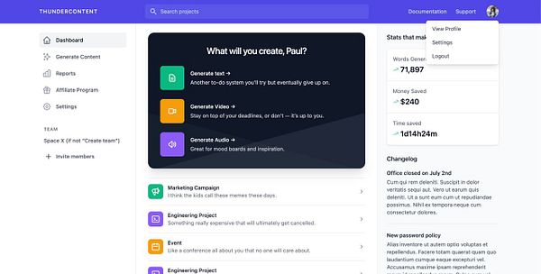 Integrate new dashboard #thundercontent