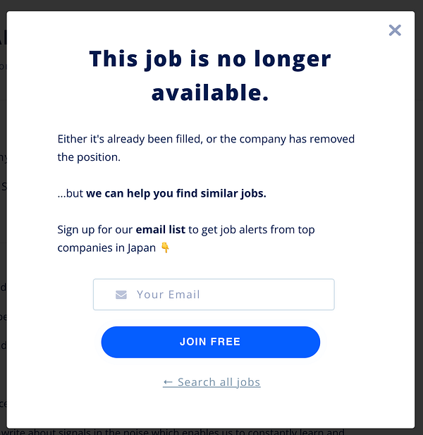 Show modal + remove apply button for unpublished jobs #japandev