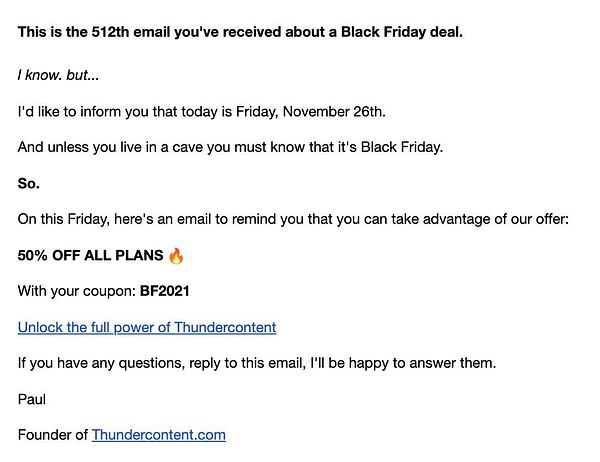 Send a last email for black friday deal #thundercontent