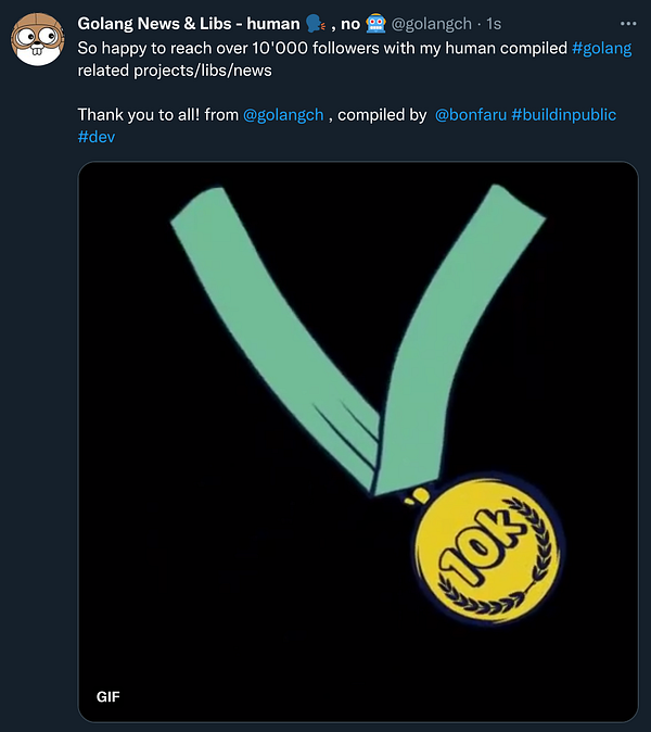 Reached > 10k followers with #golang twitter.com/golangch/status/1…
