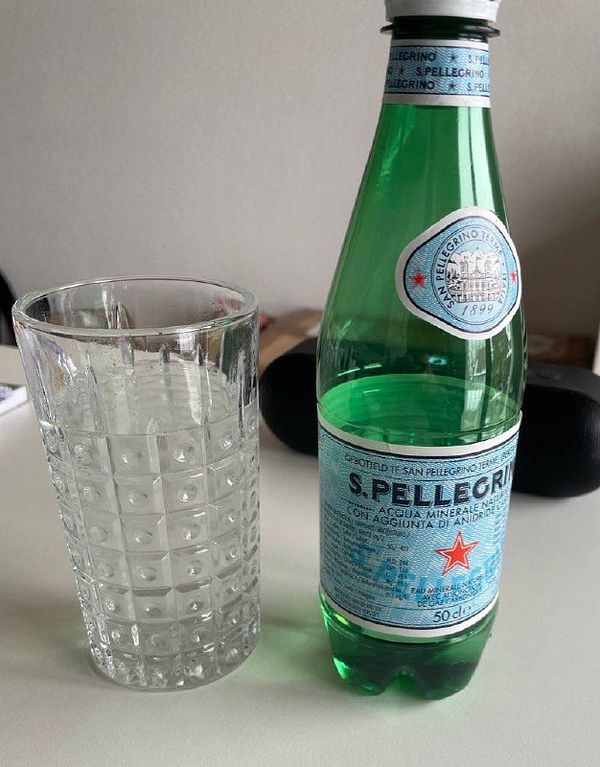 Red Bull replacement. ▫️250ml of San Pellegrino sparkling water ▫️5g of Sugar ▫️Juice from half a lime #yamlife