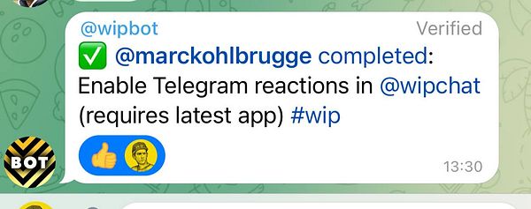 Enable Telegram reactions in @wipchat (requires latest app) #wip