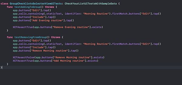 Write more UI tests for adding/removing checklists from groups to get coverage to 72.8% #checkyourlist