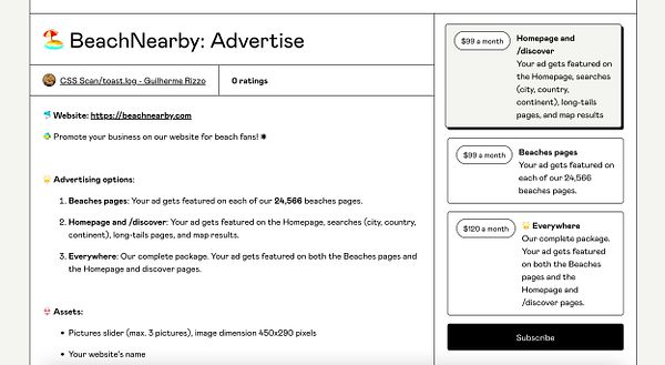 update advertising page gum.co/beachnearby #beachnearby