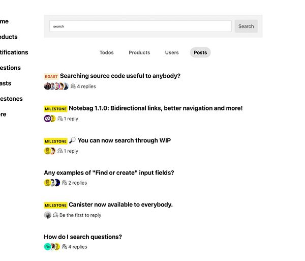 Add search for posts (questions, roasts, etc) #wip /cc @thinkolson