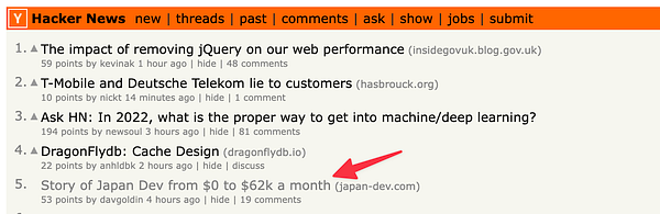 get to Hacker News front page #japandev