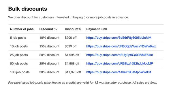 Clarify wording of credits to use "job posts" instead h/t @AndreyAzimov #startupjobs