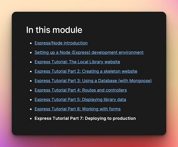 finished MDN Web Docs tutorial on express.js -- feeling more confident about achieving the build I was looking for. Will be testing what I learned in the next few days.