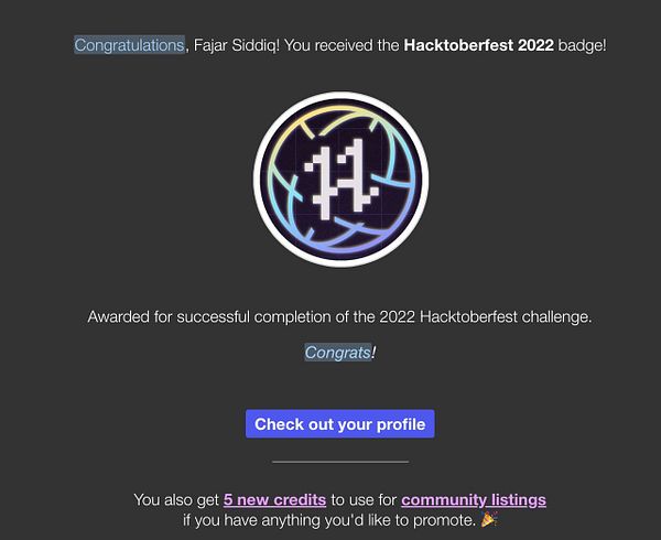 Completed my hacktoberfest 2022 this year! #fajarsiddiq