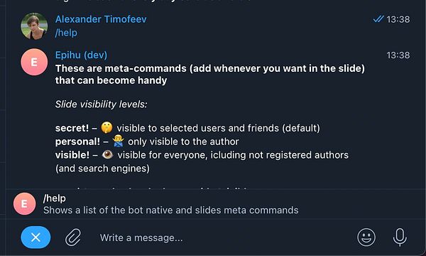 Register /help command + add visiblity level meta commands descritpion there #epihu