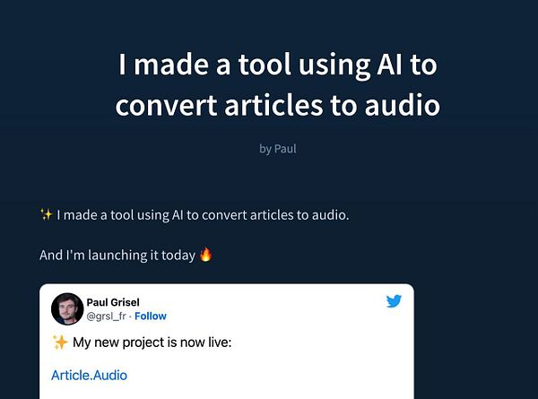 post on Indie Hackers #articleaudio