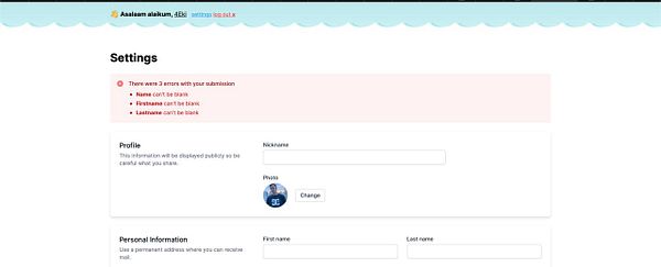 Throw validation errors in the form #epihu
