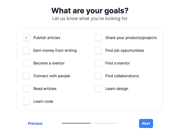 onboarding - choose website goals #prototypr