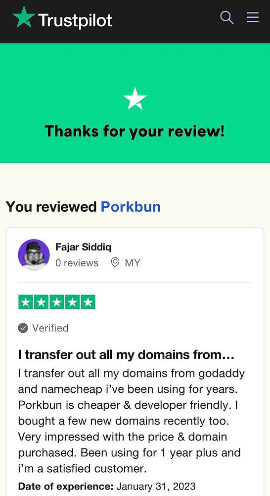 submit review for Porkbun on trustpilot #fajarsiddiq