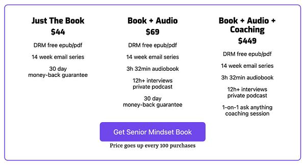 add pricing table to landing page to see if that improves click->buy conversions #seniormindset