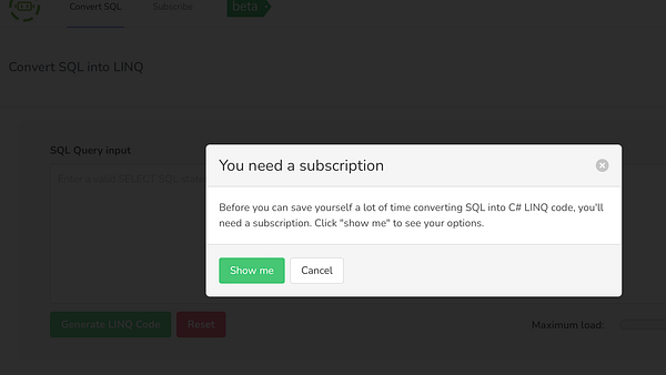 showing conversion screen but on submit button showing message to buy subscription to save time using #linqmeup