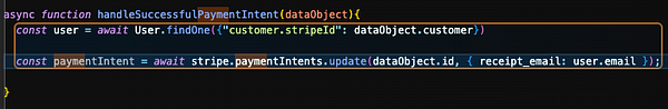 Add receipt email on payment intent update so Stripe sends email receipts after payment #ai