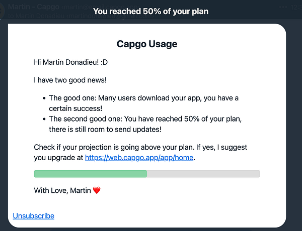 ask chat-gpt to rewrite all my email in md and html #capgo