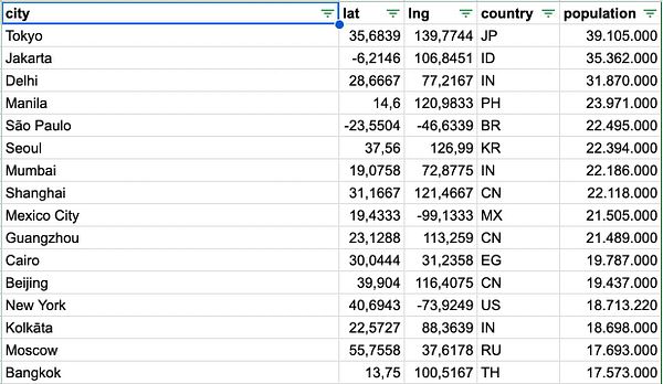 export list of cities with >10M people #pasfoto