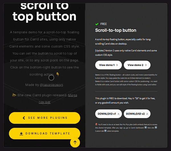 Added new native scroll-to-top button plugin to existing custom code version - plugins.carrd.co/#scrolltotop #pluginsforcarrd
