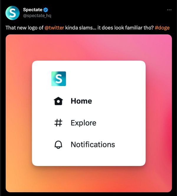 send a meme tweet to jump on the Twitter Doge logo train #spectate