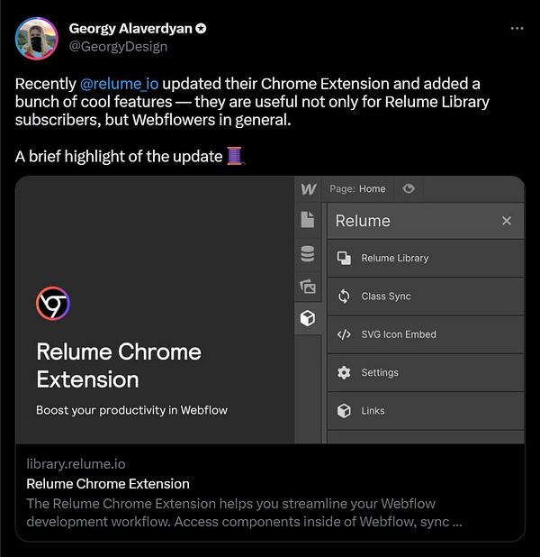 Tweet about new Relume Chrome extension update • twitter.com/GeorgyDesign/stat… #georgydesign #firststreaks