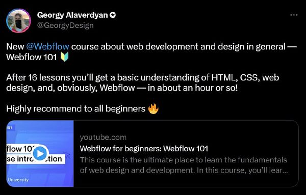 Tweet about new Webflow course • twitter.com/GeorgyDesign/stat… #georgydesign #firststreaks