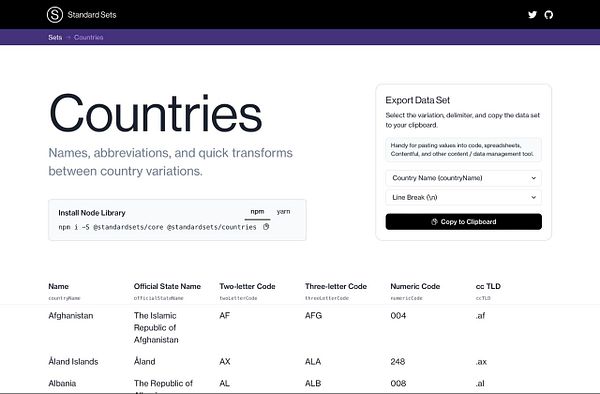add countries pages #standardsets