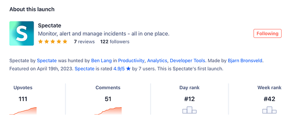 Surpass the 100 upvotes on my *first* Product Hunt launch! 🤯 #spectate