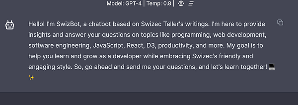get SwizBot deployed and make it introduce itself at the start of every chat #aiplay